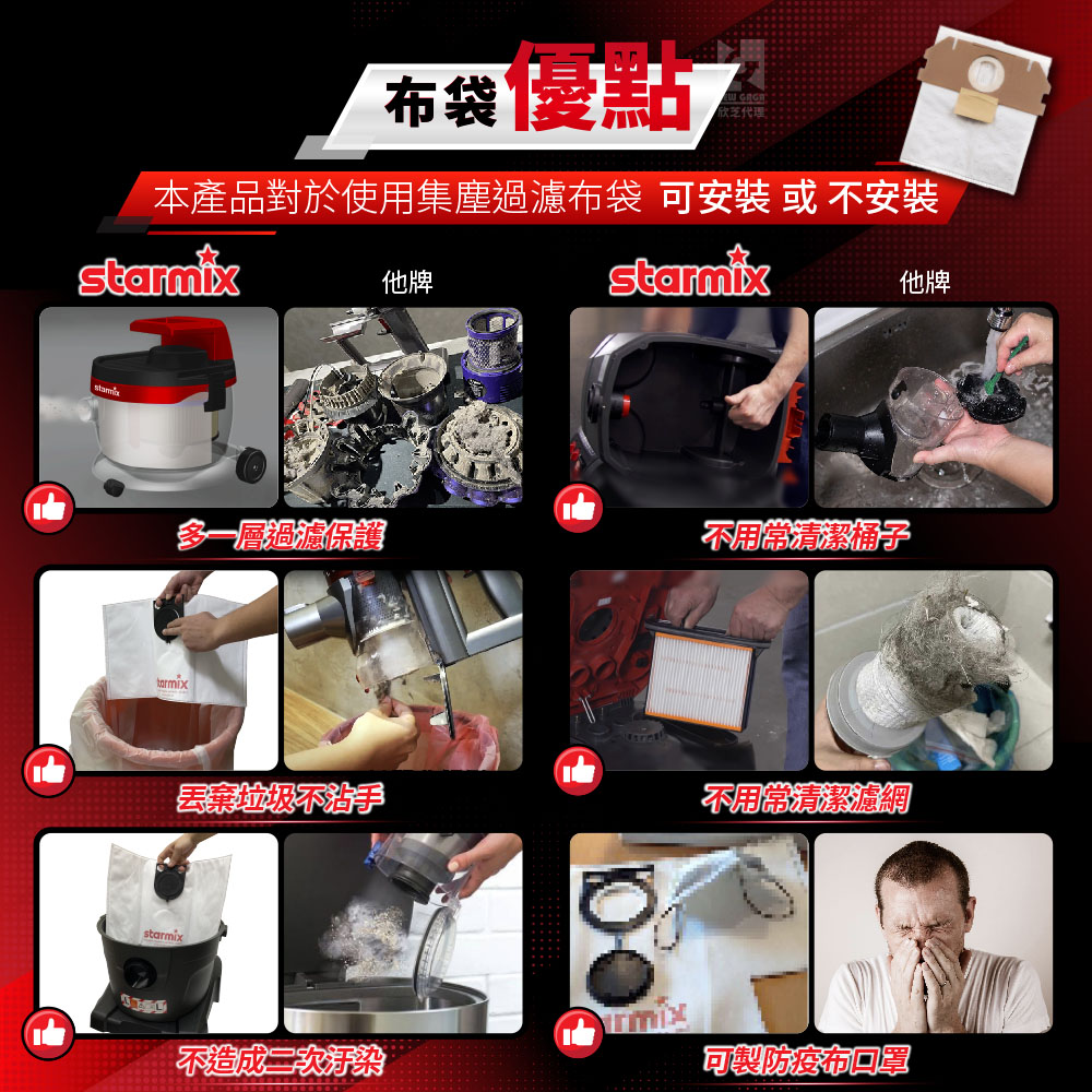 | 一機三用 | 家、商業、工業(少量粉末環境),各大場所皆可清潔。 |