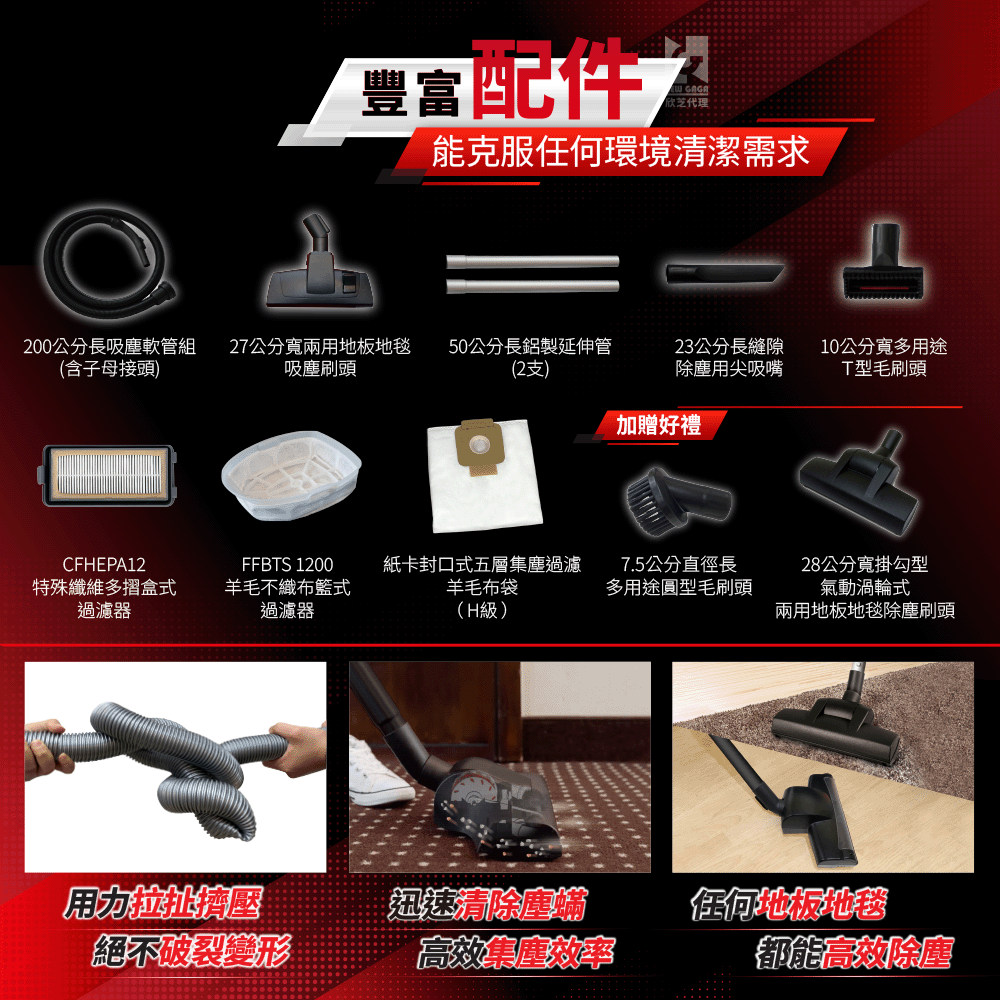 | 台灣限定 | 專為台灣市場設計的工商用抗螨型乾式吸塵器。 |
