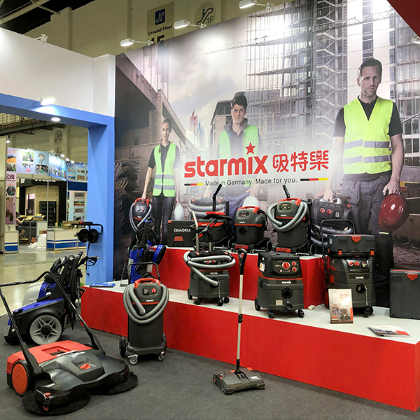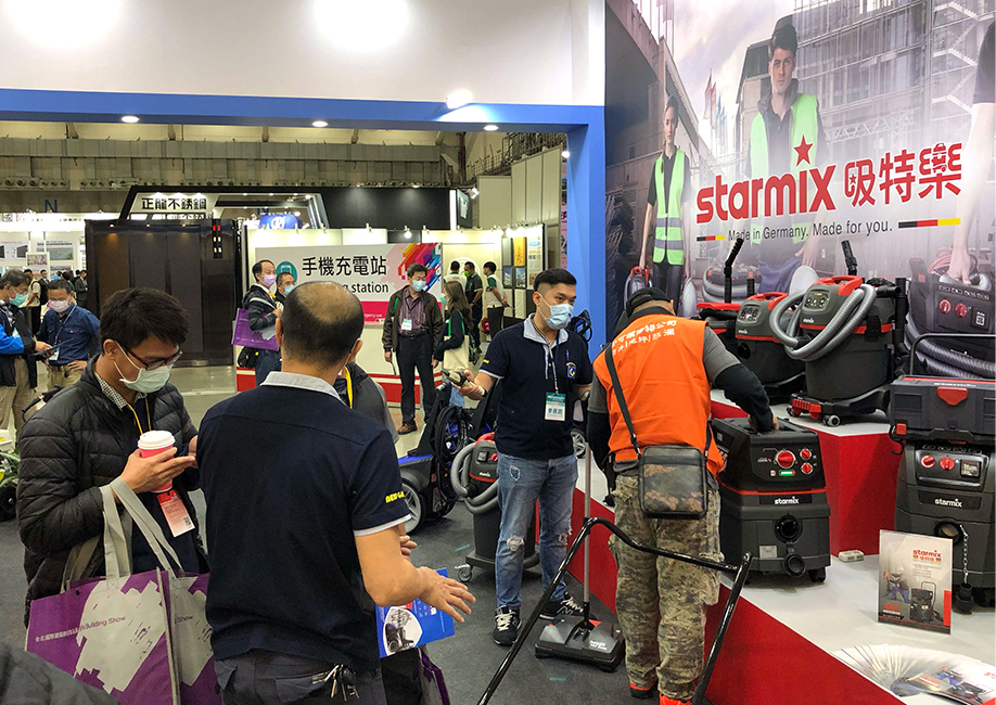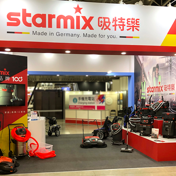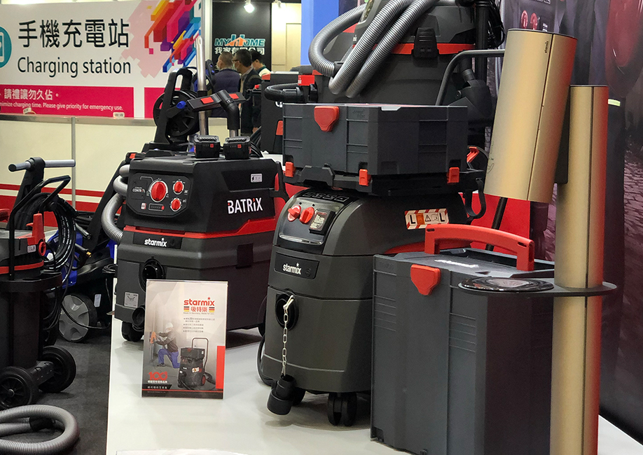 首度在南港展覽館參與台北國際建築建材暨產品展,展示多款工業用、商業用、乾溼兩用和乾溼吹三用的專業吸塵器,以及最耐操的掃地機,讓參觀民眾實際體驗到德國Starmix吸特樂領先全球的眾多專利科技,也讓大眾暸解到用對設備能大幅降低粉塵對人體的危害,落實日益受到受重視的職業安全健康議題。