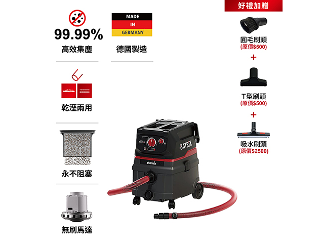 | 乾溼四用 | 乾溼發明者,吸塵、吸水、吸油、吸酸、吸鹼,家、商業、工業(多量粉末環境)、無塵(萬級以上等級)。 |