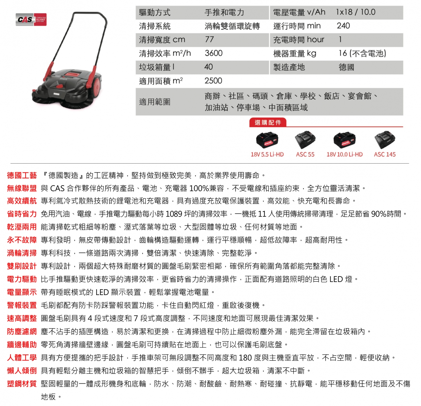 省時省力 | 免用汽油、電線,手推電力驅動每小時 1089 坪的清掃效率,一機抵 11 人使用傳統掃帚清理,足足節省 90%時間。 |