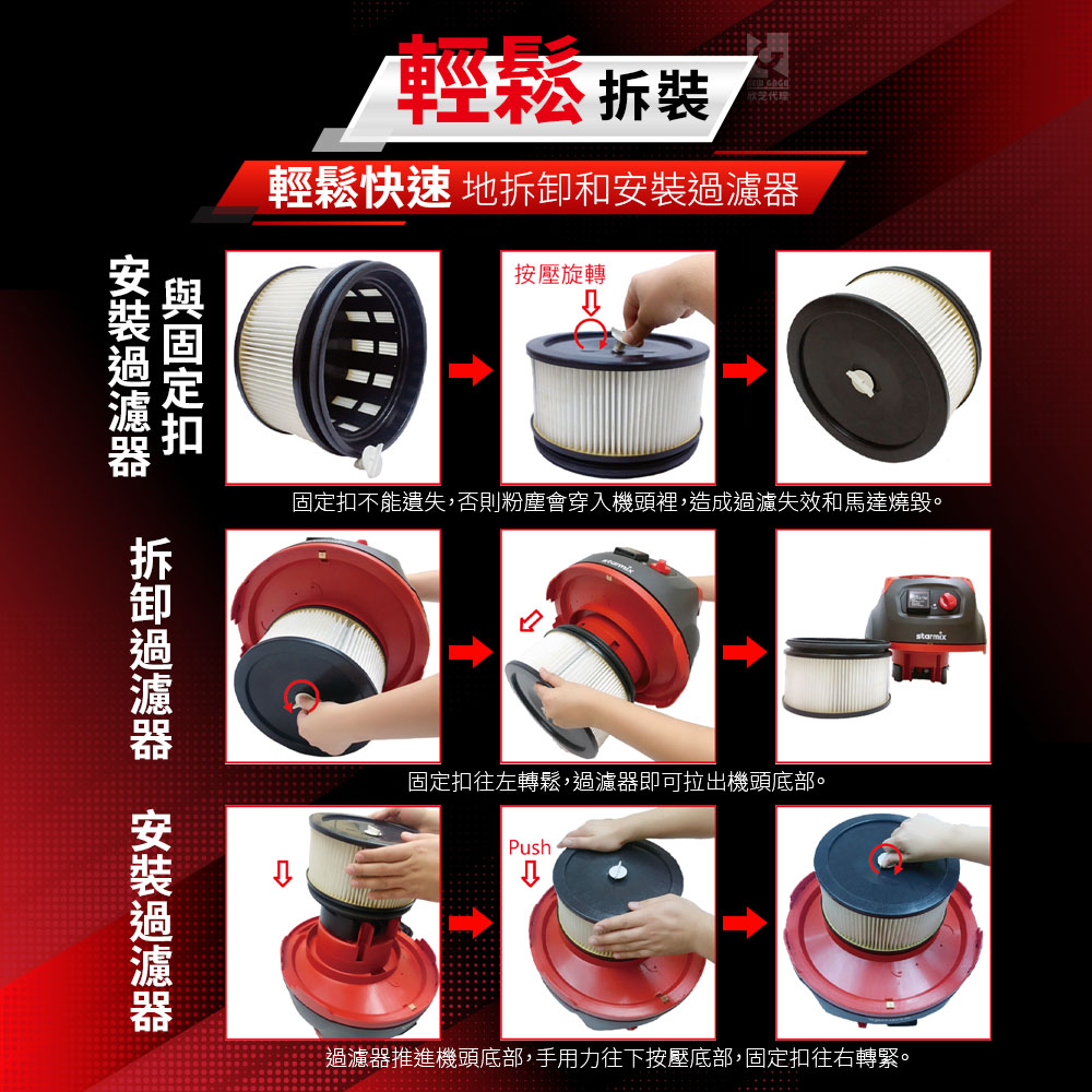 ★ 濾網清潔:可用水洗(禁止使用蒸氣和高壓清洗,清潔完過濾器必須要乾燥後才能繼續使用)、毛刷、風槍(與過濾器距離必須要保持15公分以上)等方式