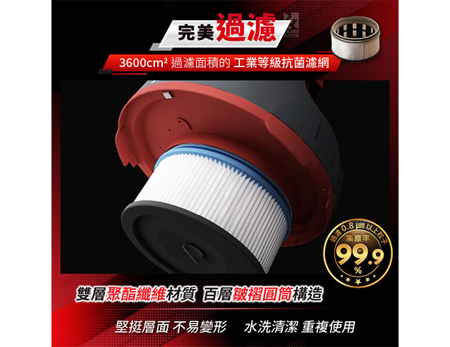 ★ 過濾集塵%:99.9%(0.8微米以上粒子)