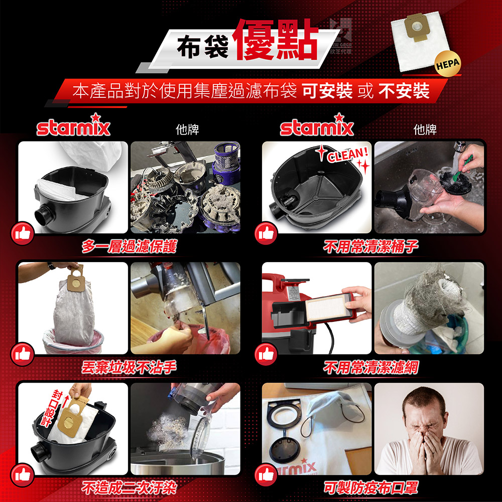 - 封口設計讓丟棄布袋塵不沾手外漏