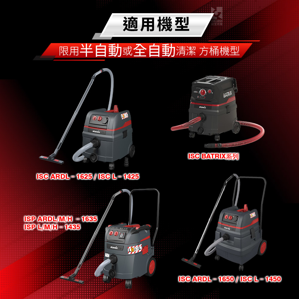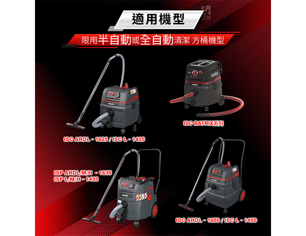 ★ 適用機型:25-50公升的方桶機型(ISC / ISC BATRIX / ISP)(半/全自動振塵清潔系統方桶機型專用)