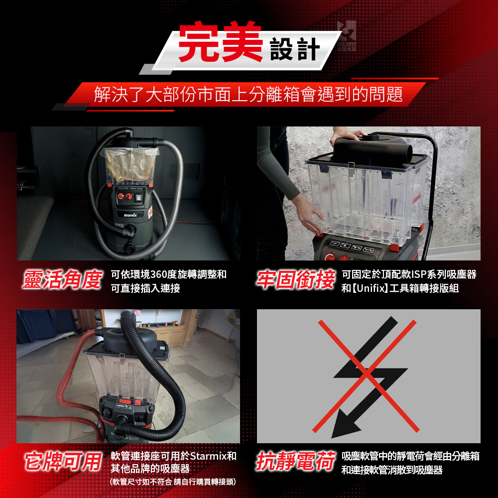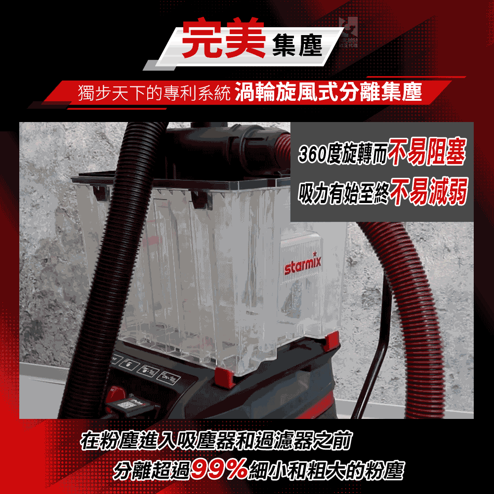 - 分離超過99%細小和粗大的粉塵